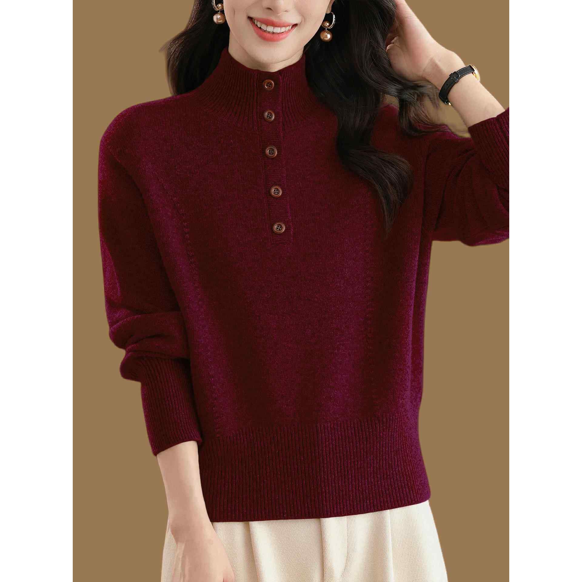 - 半高圆领毛衣女
