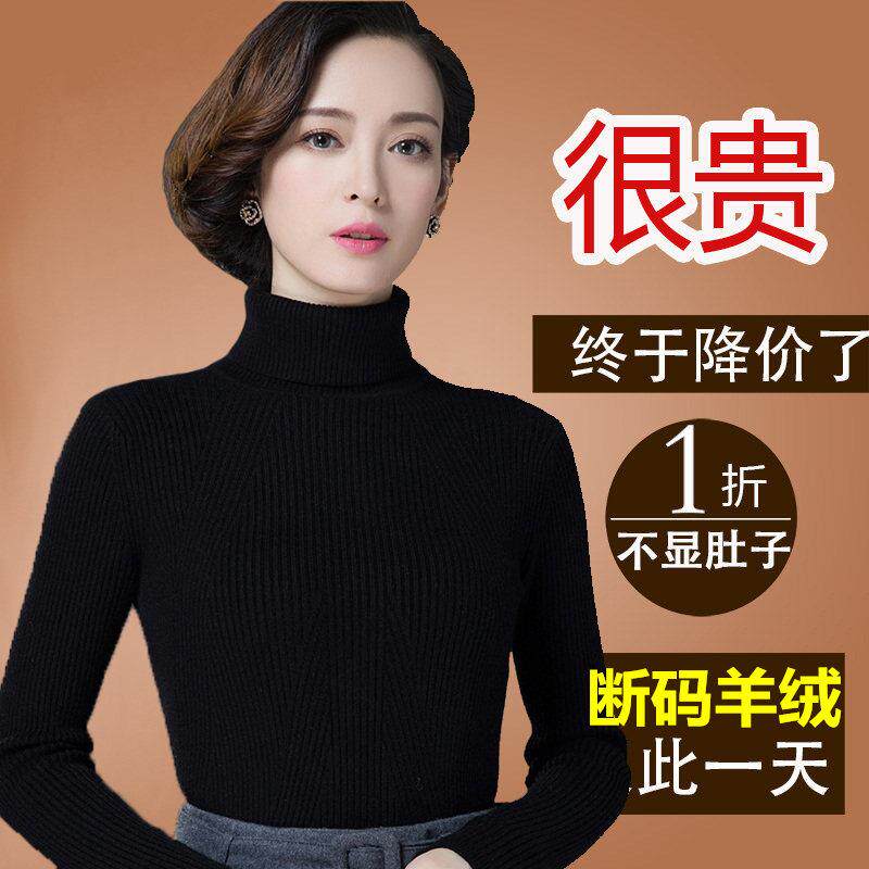 鄂尔多斯市羊绒衫女100纯羊绒妈妈装可解扣打底半高领加厚毛衣冬