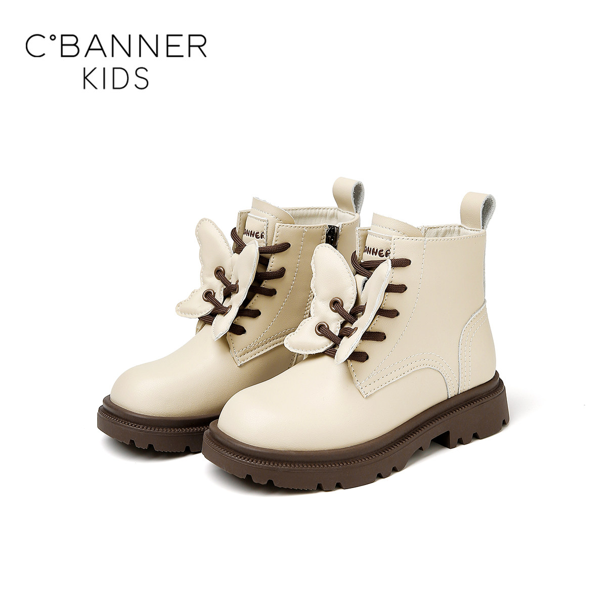 千百度2025年秋季新款女宝宝百搭短靴子儿童女童马丁靴小女孩皮靴