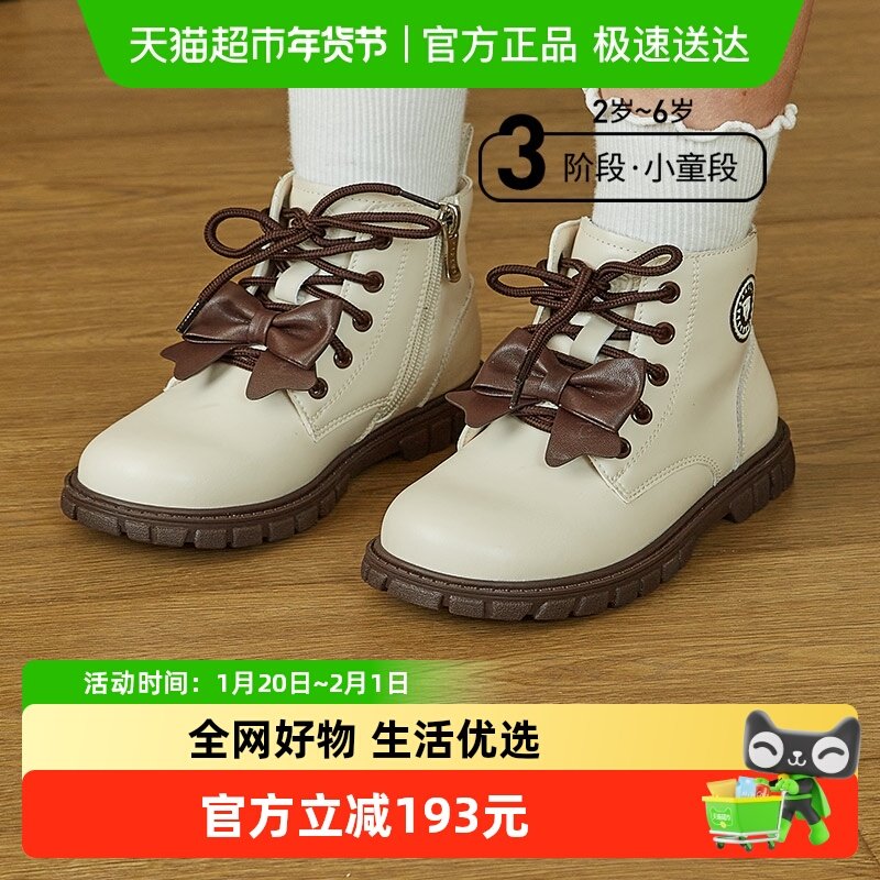 千百度2025秋季新款女童马丁靴英伦风短靴女宝宝百搭软底舒适靴子