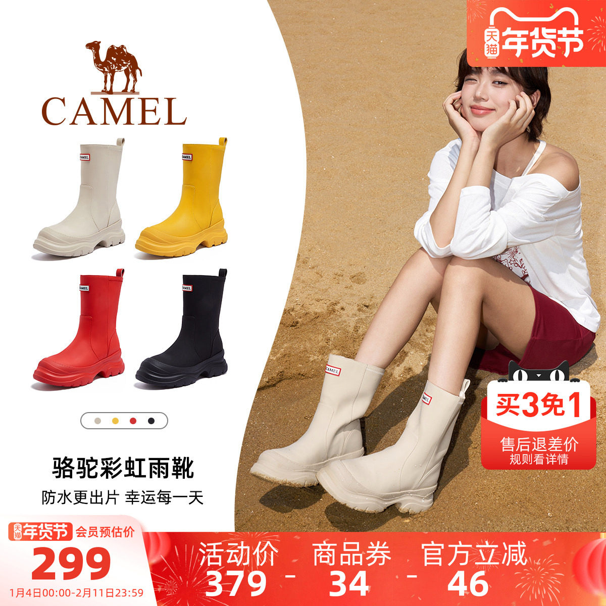 骆驼女鞋2025秋季新雨靴女防水百搭厚底显高时装靴显瘦休闲短靴子