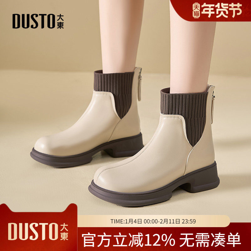 大东dd小短靴女2025新款女靴妈妈靴子秋季百搭踝靴秋冬皮鞋马丁靴