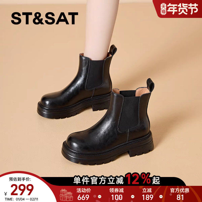 星期六英伦风真皮切尔西靴女靴2025秋季新款百搭厚底马丁靴短靴子