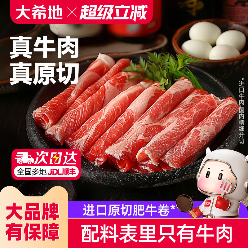 大希地原切肥牛卷原切牛肉片火锅烧烤食材寿喜烧牛肉卷冷冻牛肉卷