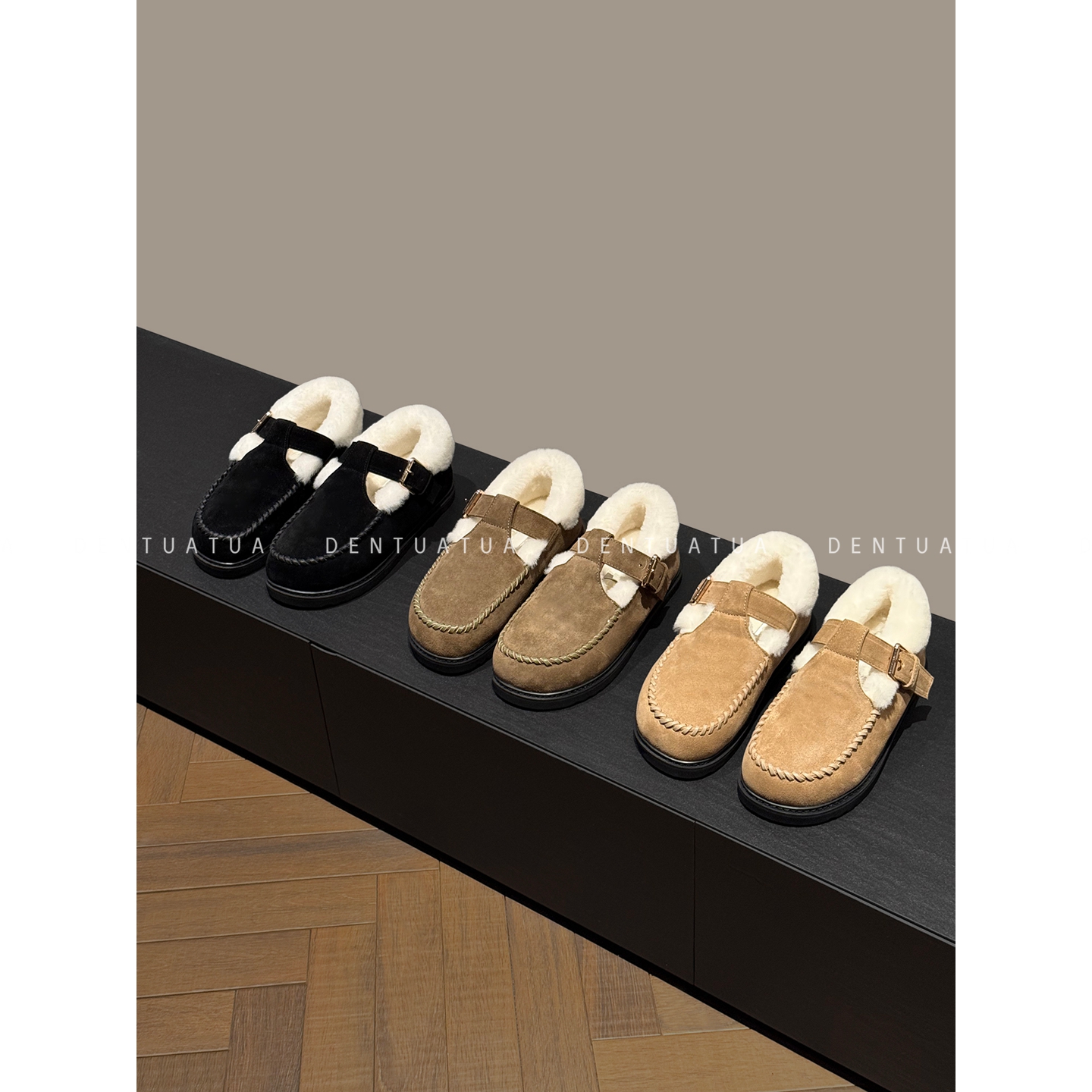 DENTUATUA 雪原足迹的律动!25FW 羊羔毛反绒厚底乐福豆豆鞋 女