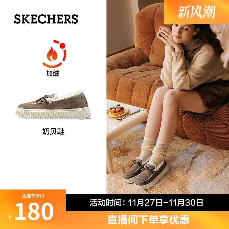 斯凯奇奶贝鞋|秋冬季女鞋加绒乐福鞋毛毛鞋保暖豆豆鞋时尚休闲鞋