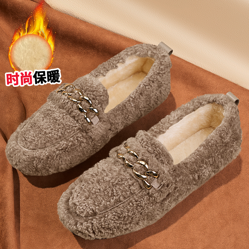 冬季新款泰迪毛加绒豆豆鞋外穿百搭加绒保暖软底防滑毛毛鞋棉鞋女