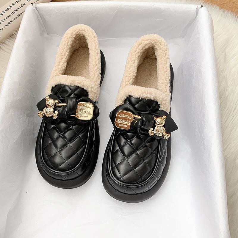 2025冬季新款豆豆鞋女加绒百搭保暖毛毛外穿时尚一脚蹬小熊豆豆鞋