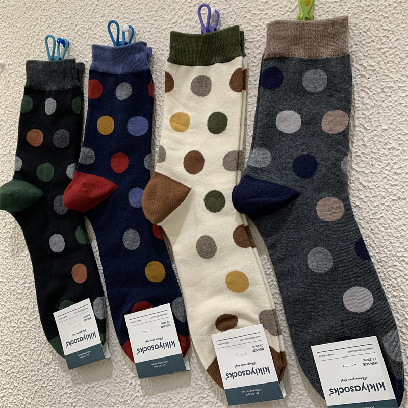 kikiyasocks男袜韩国东大门秋冬新款街头彩色圆点拼色波点中筒袜