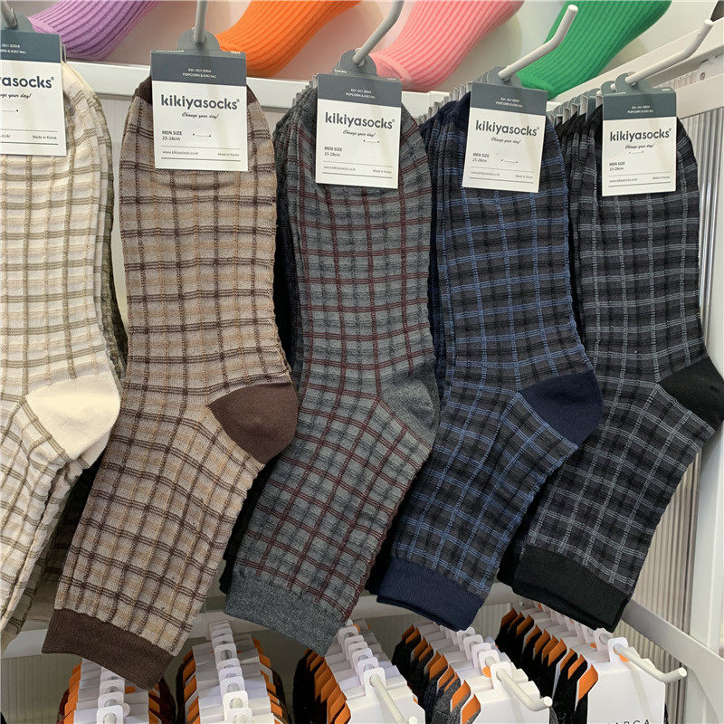 kikiyasocks韩国男袜东大门秋冬新款英伦风立体竖条纹方格中筒袜