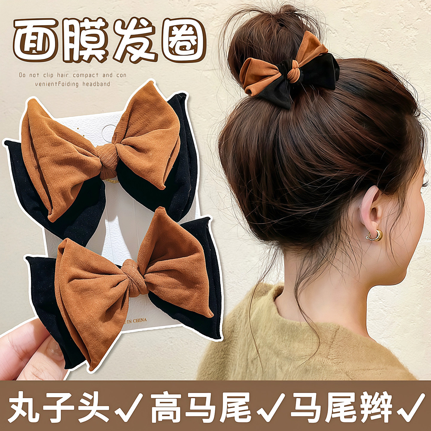 韩版东大门秋冬撞色蝴蝶结高弹力发绳时尚百搭不伤发头绳气质发圈