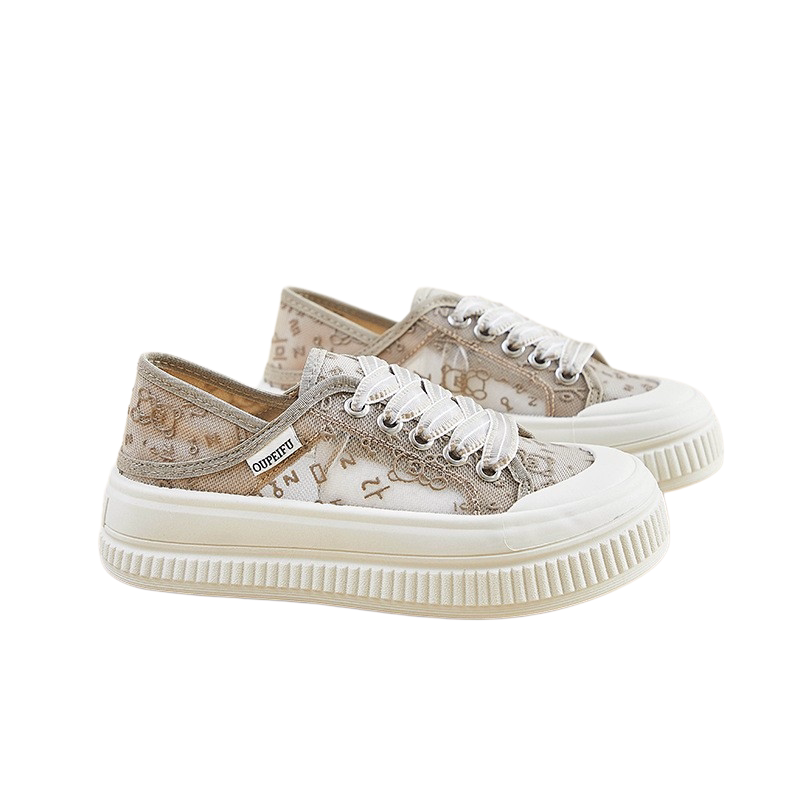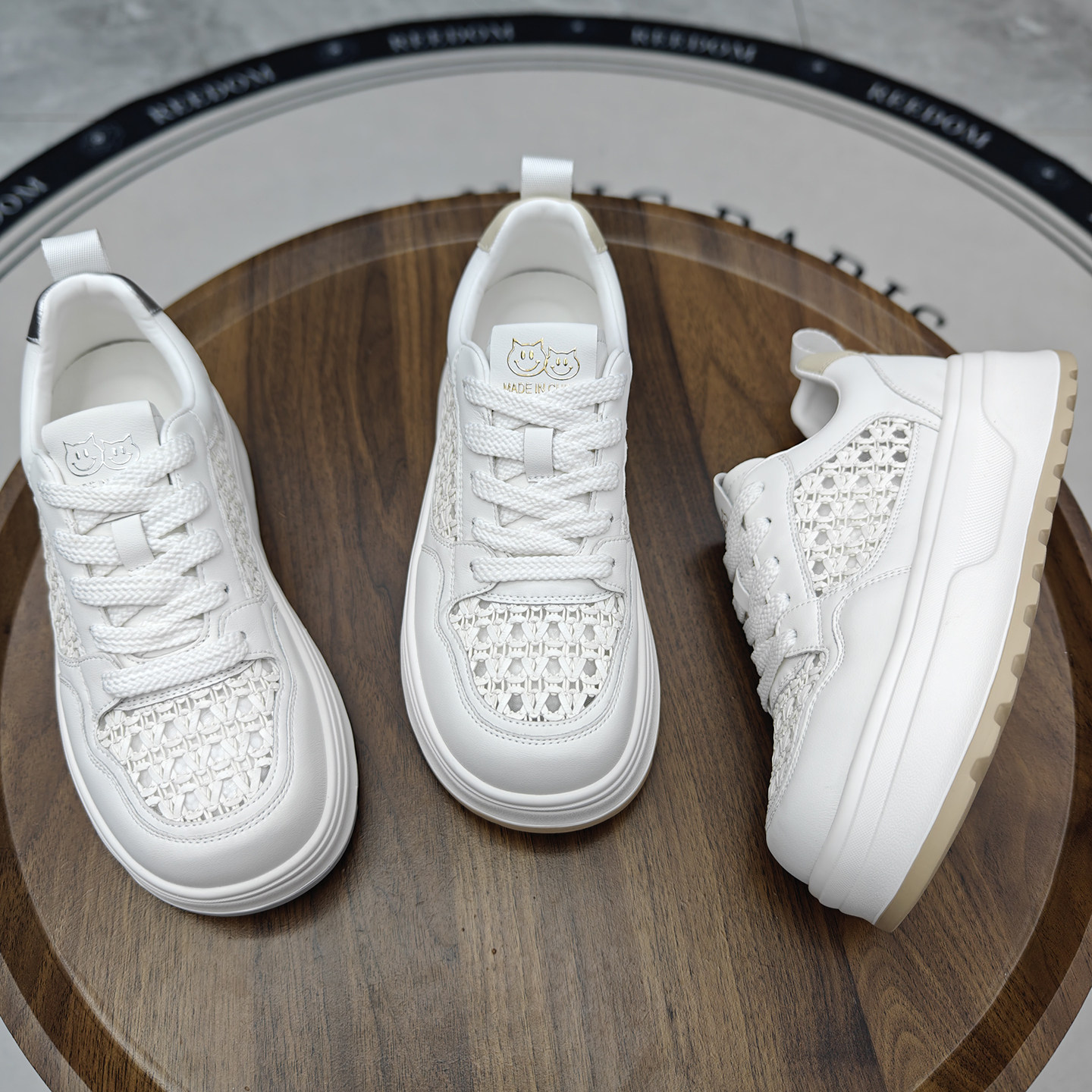 娃娃头蕾丝网面小白鞋女2025夏季韩版圆头系带厚底舒适学生板鞋