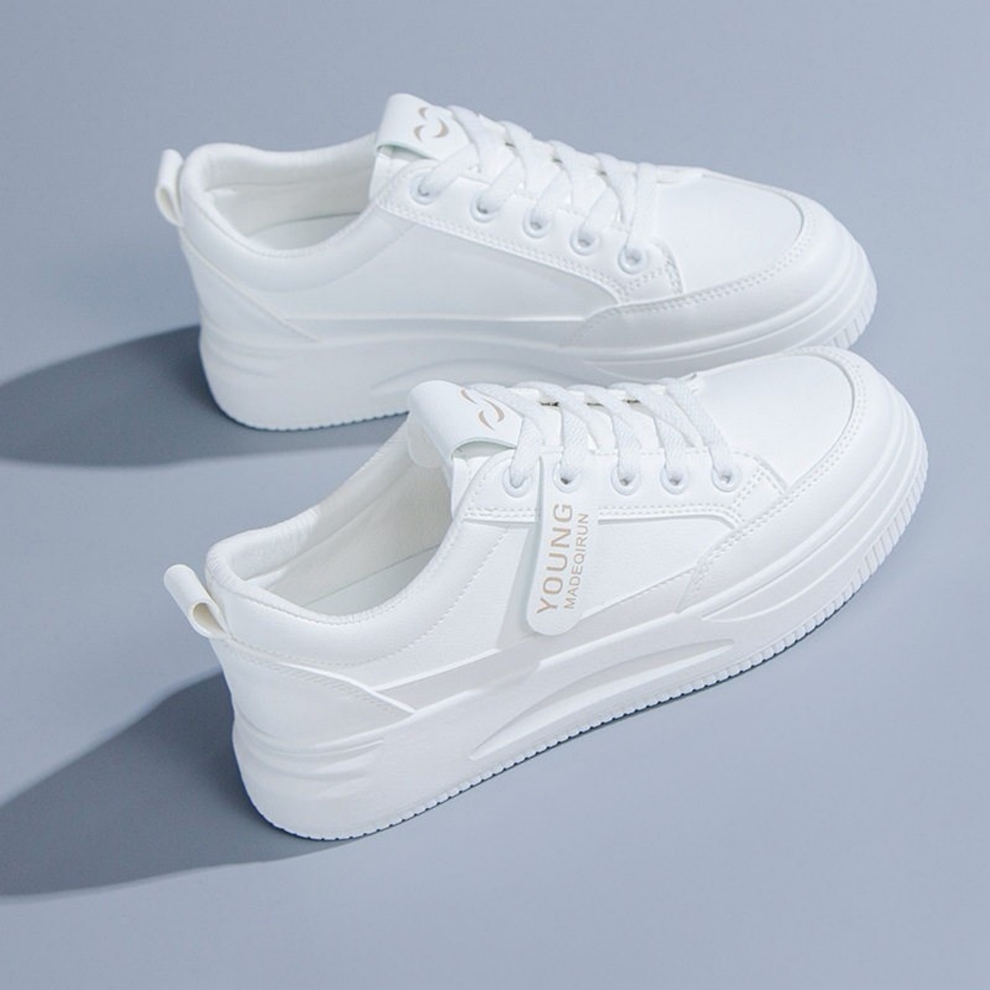 韩版真皮厚底小白鞋女学生休闲鞋2026新款平底运动板鞋系带单鞋女