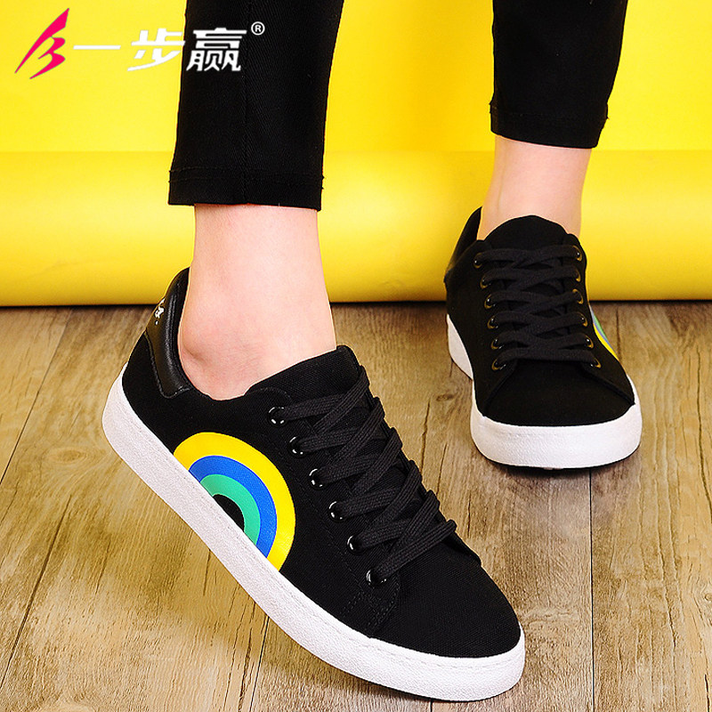 一步赢春季女鞋系带小白鞋韩版帆布鞋学生平底休闲鞋低帮板鞋球鞋