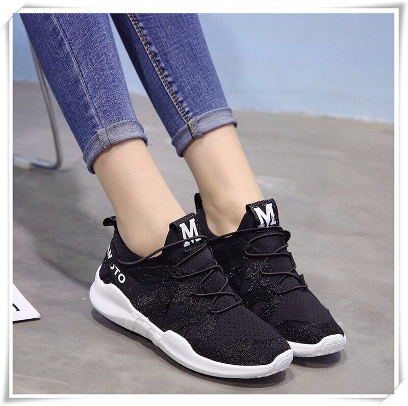 健身跑步鞋女韩版小白鞋时尚平底学生百搭运动休闲鞋系带飞织女鞋