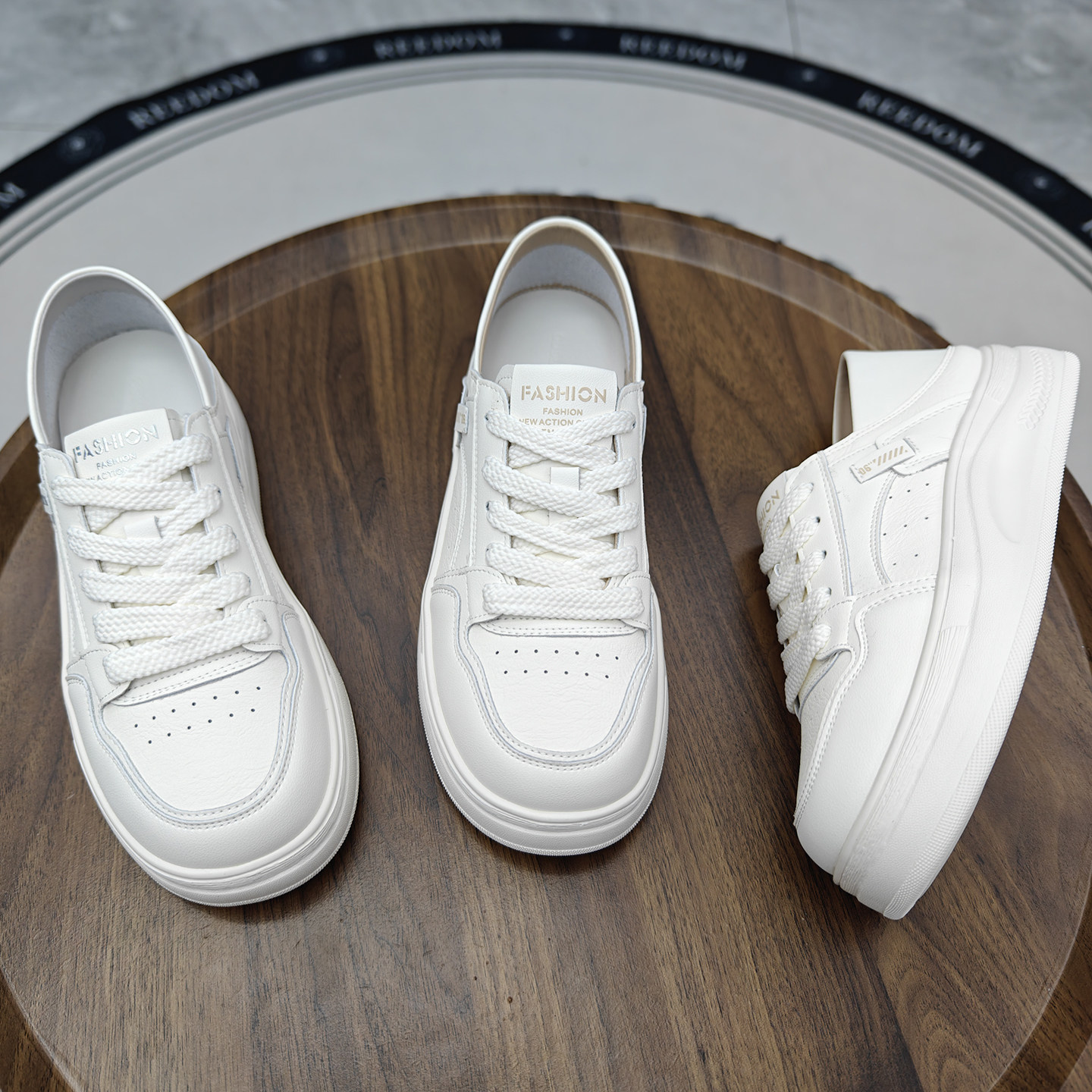 小白鞋女2025春季新款百搭韩版真皮厚底系带学生板鞋松糕底单鞋女