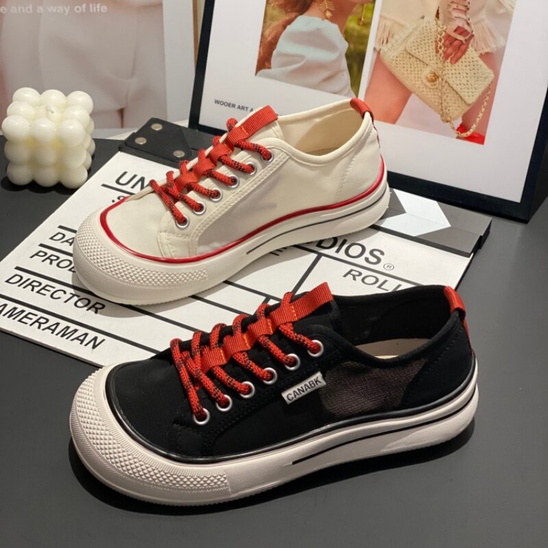韩版网面小白鞋女网面系带厚底2026夏平底学生板鞋透气休闲运动鞋