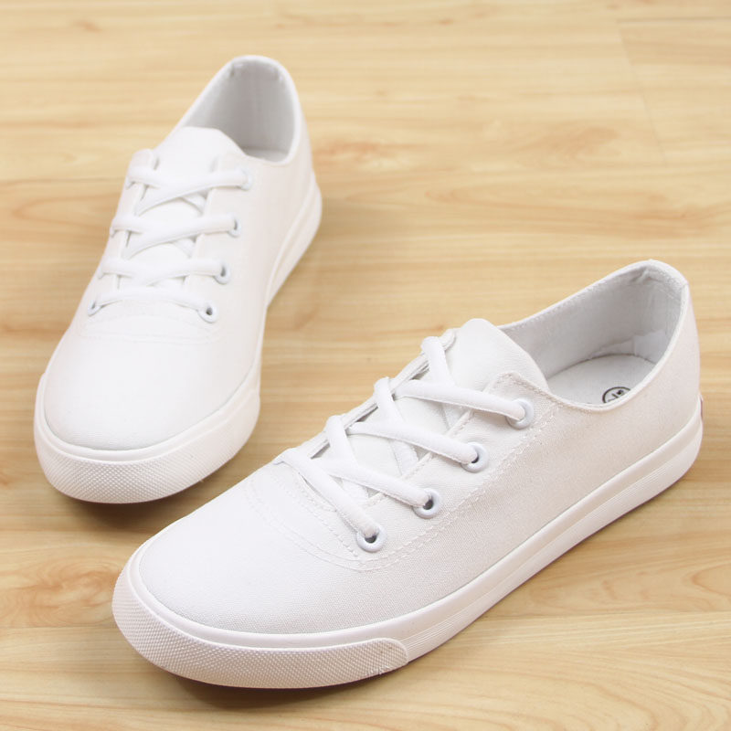 夏季低帮浅口帆布鞋休闲女鞋韩版系带运动学生小白鞋平底休闲板鞋