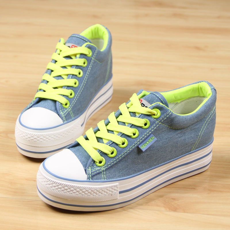 人本简约百搭小白鞋女内增高厚底学生休闲纯色帆布鞋韩版系带女鞋