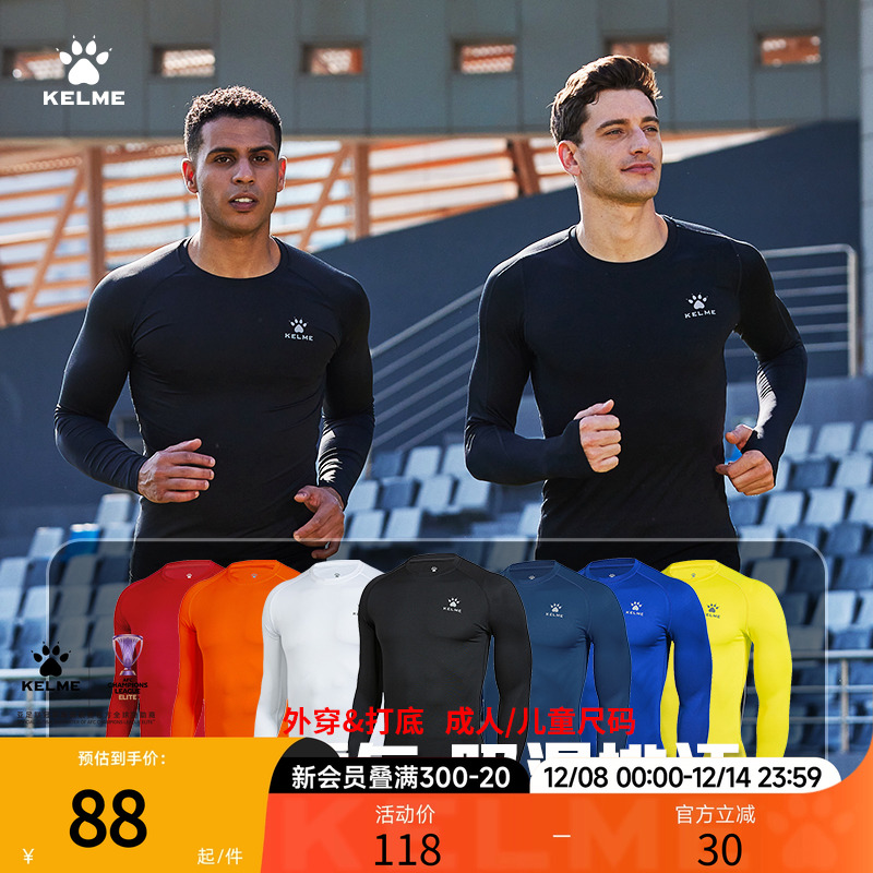 KELME卡尔美足球紧身衣男高弹健身运动长袖儿童T恤打底透气训练服