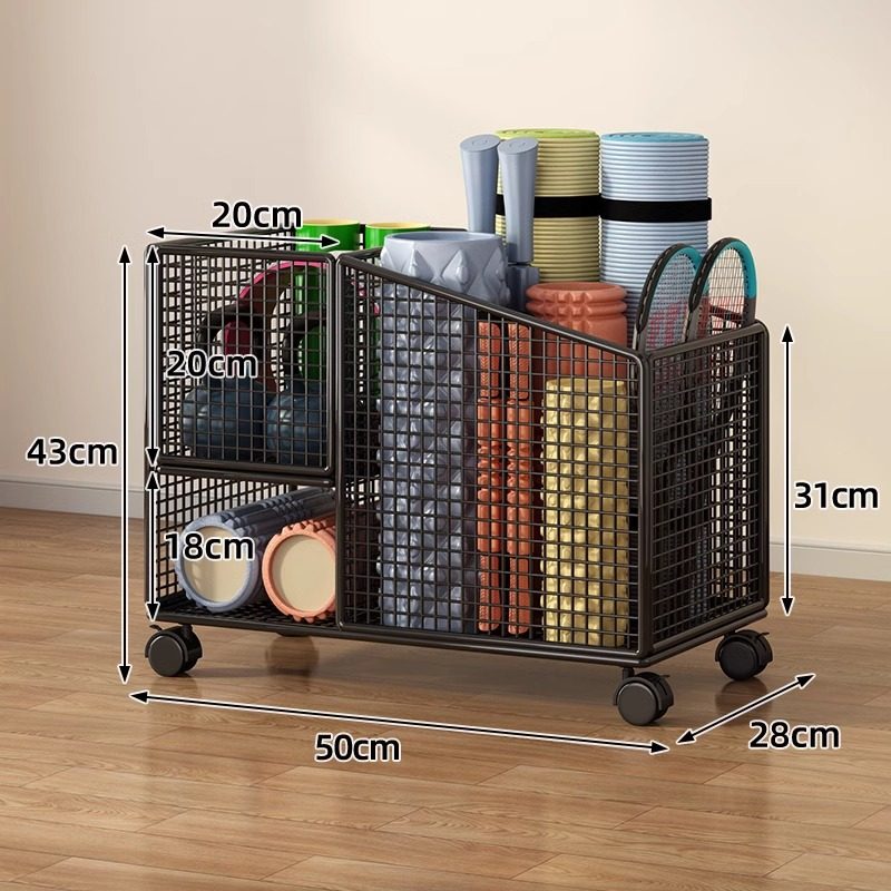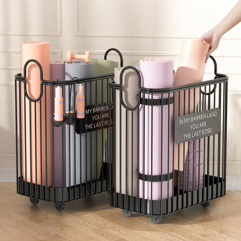 瑜伽垫收纳筐带轮健身器材运动器械置物架家用羽毛球用品篮筒神器