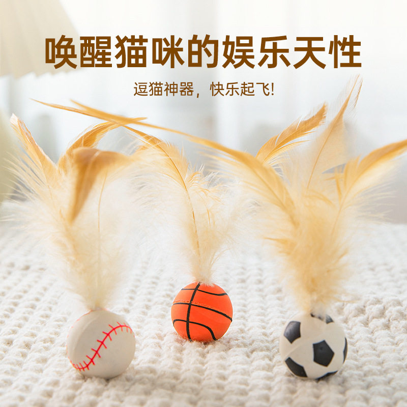新品猫咪玩具创意猫猫自嗨解闷羽毛球用品逗猫玩具宠物用品弹力球