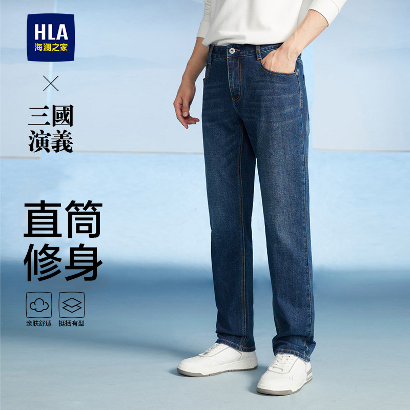 HLA/海澜之家山不在高水洗猫须牛仔裤26春夏新款刺绣直筒长裤子男