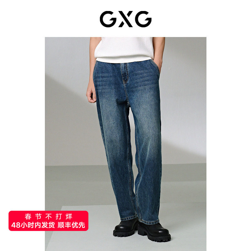 GXG男装 宽松直筒牛仔蓝裤子休闲长裤 24年夏G24X052002