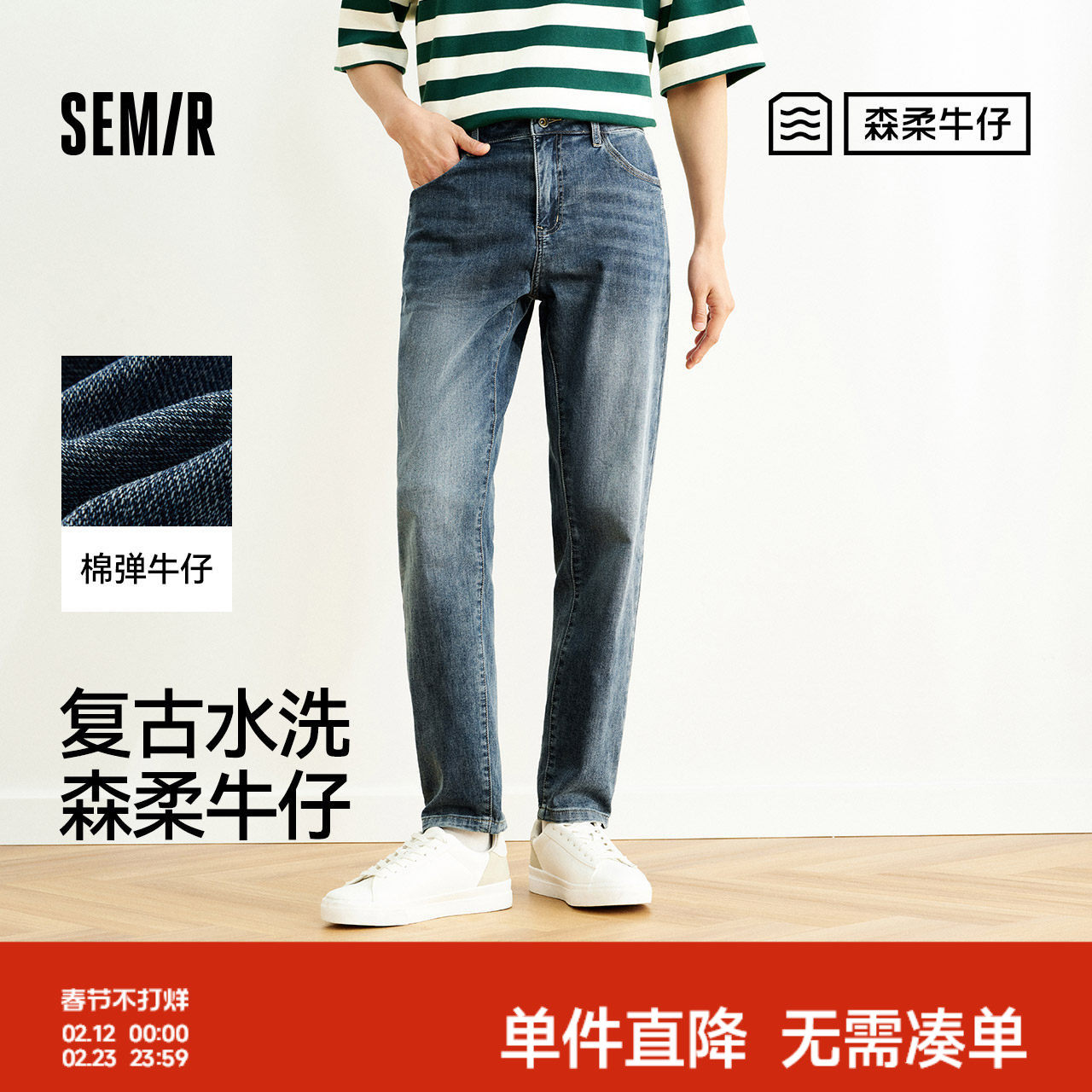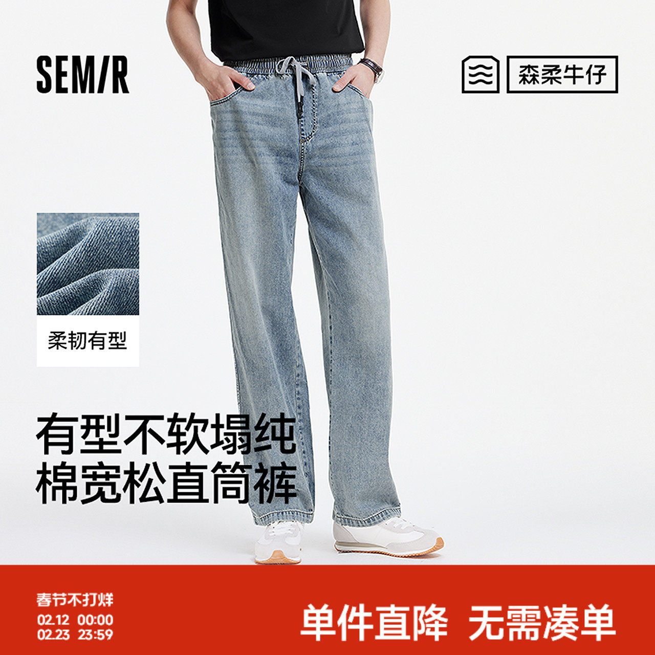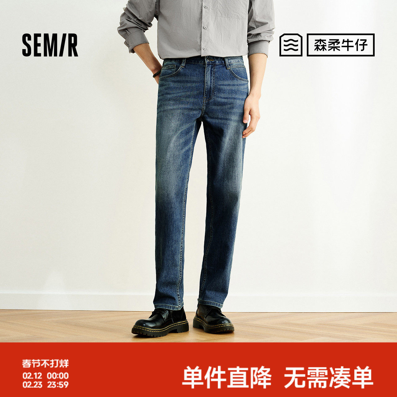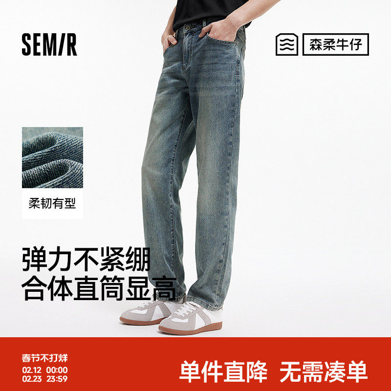 森柔牛仔|森马牛仔裤男2024夏季新款复古水洗直筒裤时尚肌理长裤