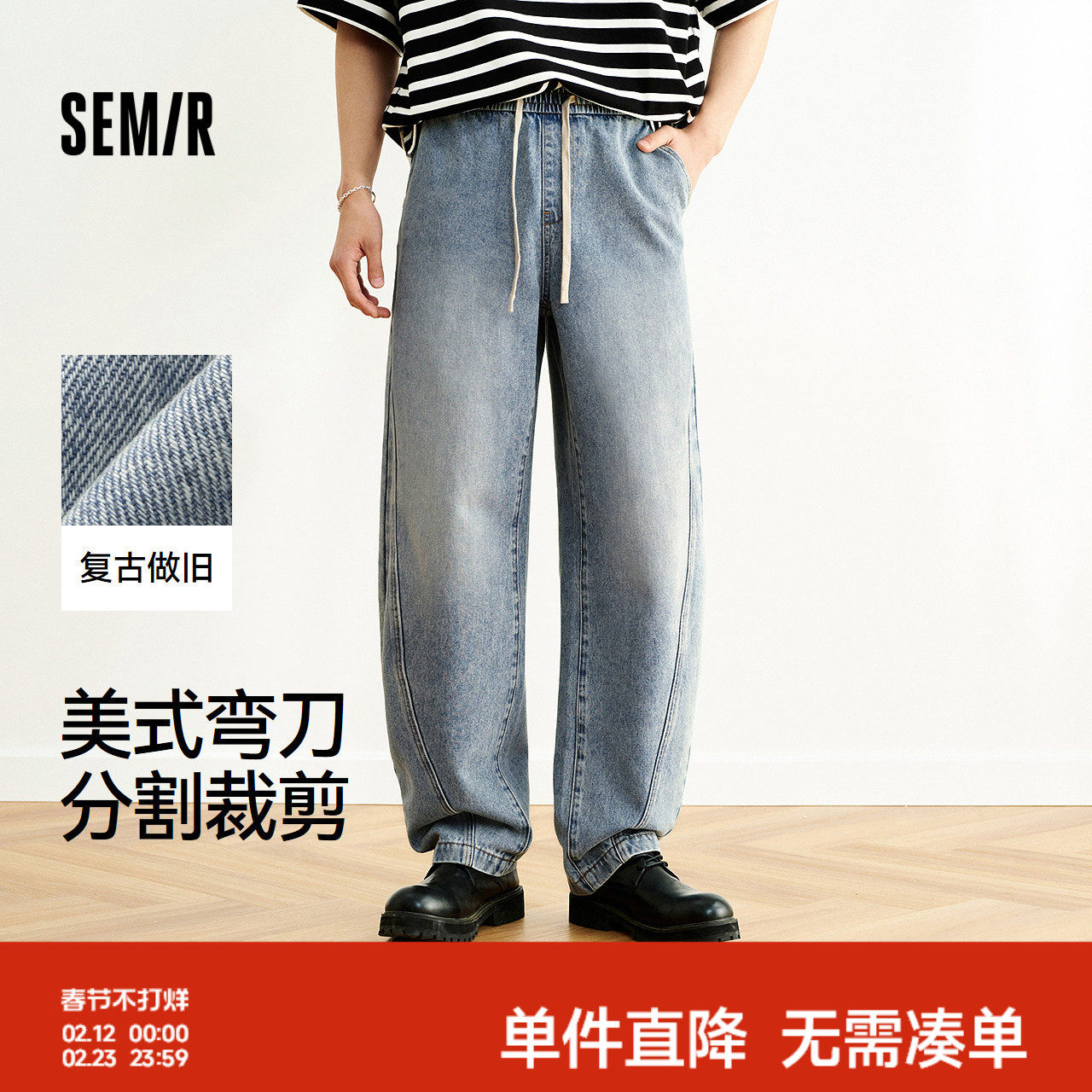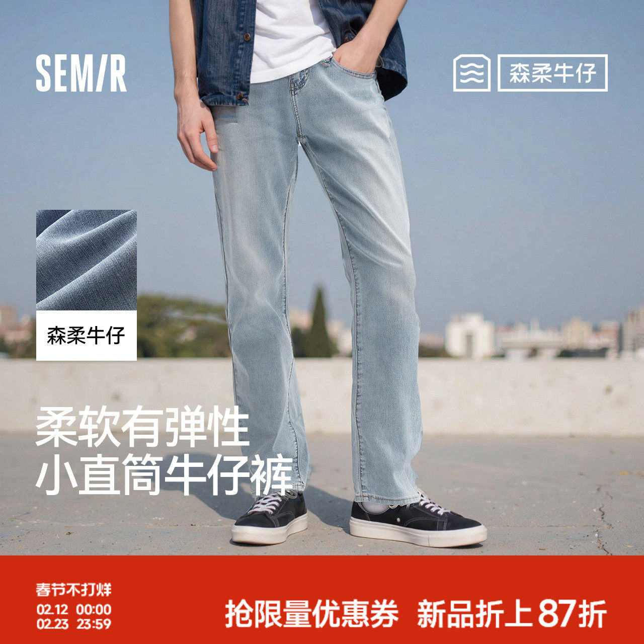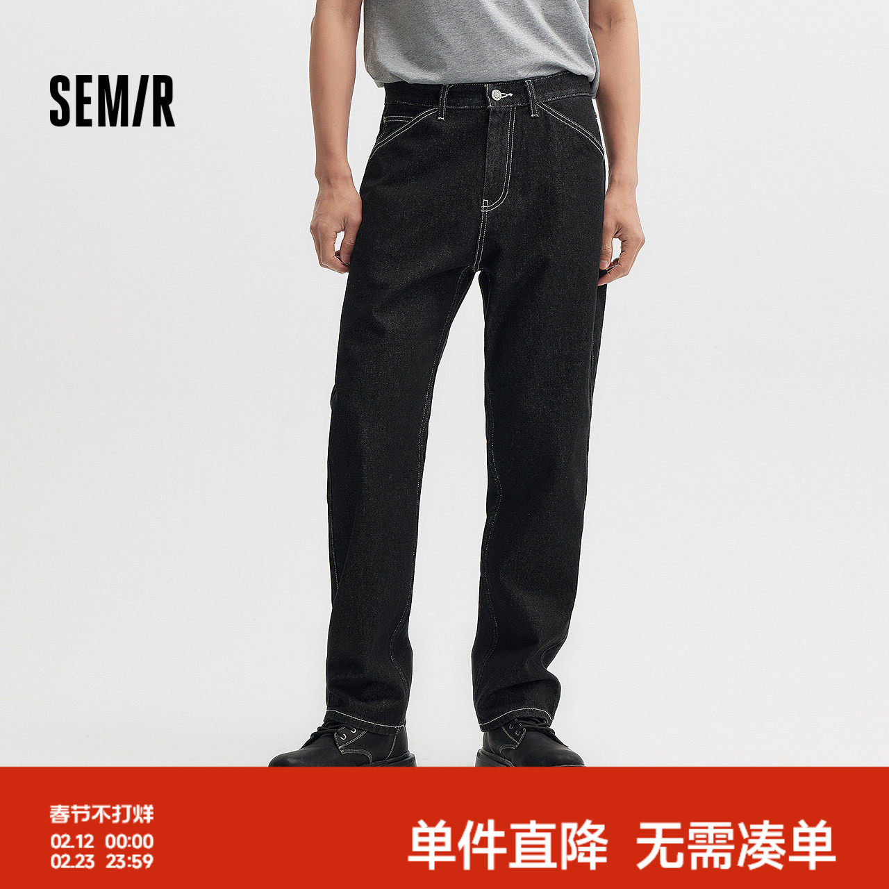 森柔牛仔|森马牛仔裤男2024夏季新款复古水洗直筒裤时尚肌理长裤