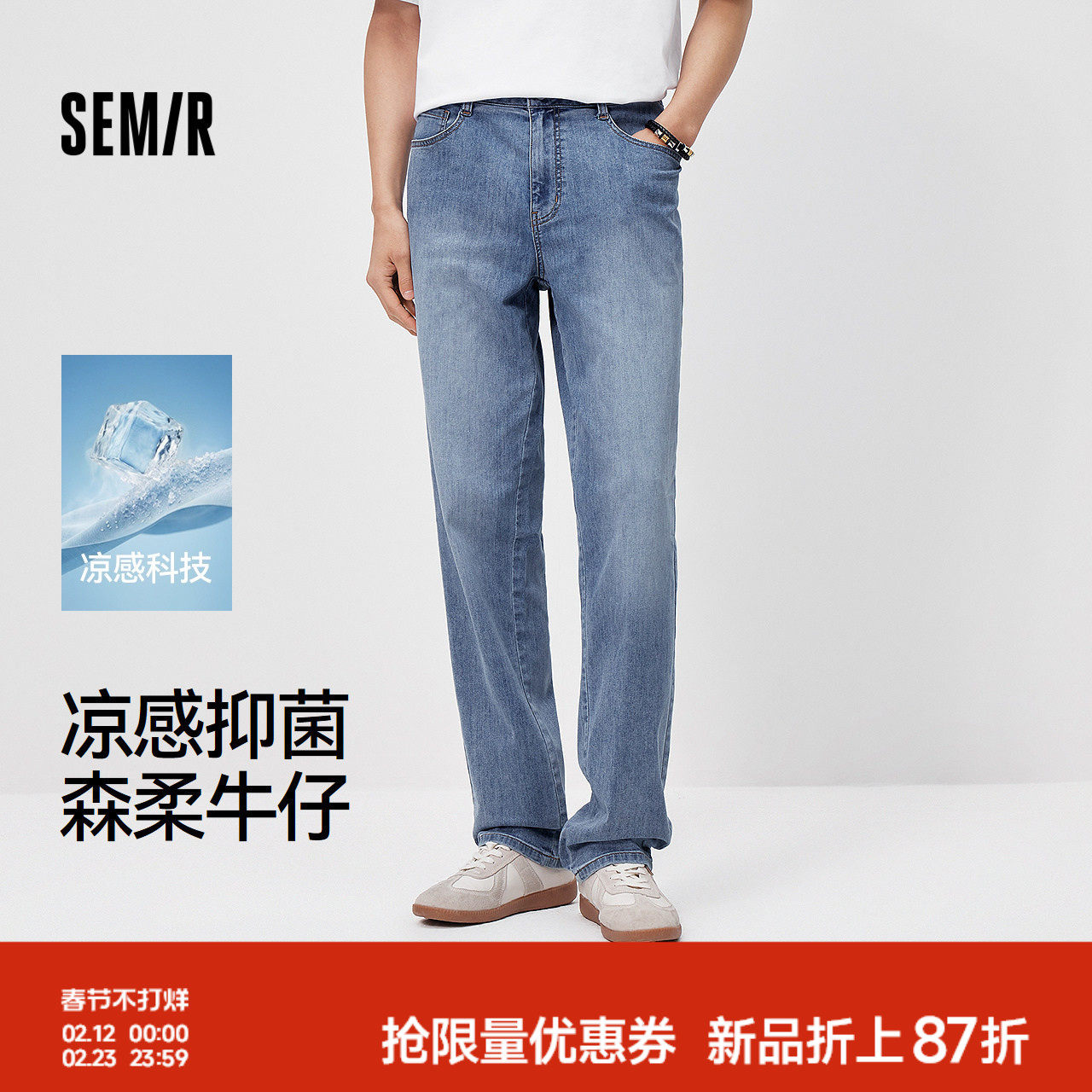 班尼路SK美式复古天丝莱赛尔牛仔裤男夏季薄款直筒裤宽松长裤子YS