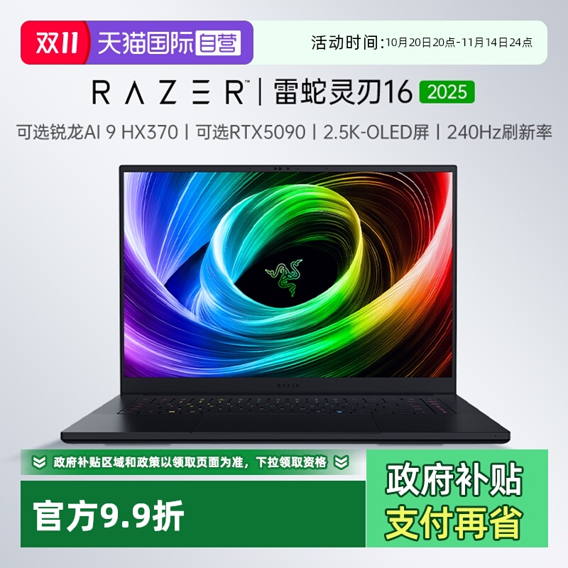【自营】【政府补贴】Razer雷蛇灵刃16轻薄AI智能游戏笔记本电脑RTX5080/5090显卡240Hz高刷OLED屏幕AMD