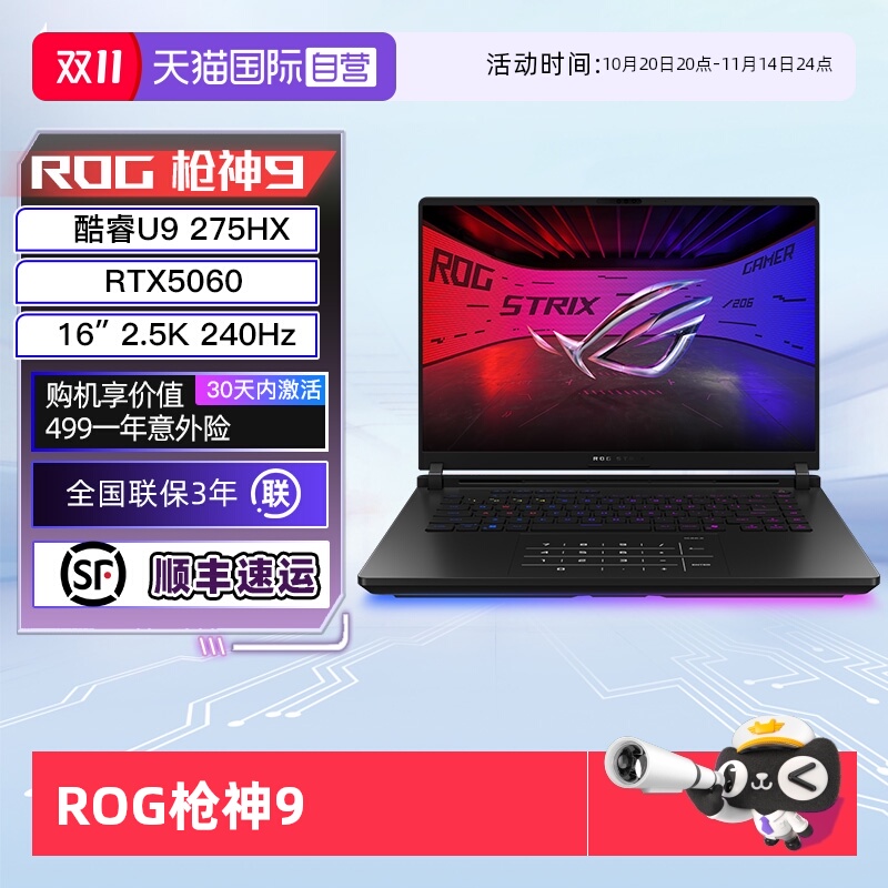 【自营】ROG枪神9 酷睿U9 16英寸 游戏笔记本电脑U9 275HX RTX50系列显卡 2.5K 240Hz玩家国度