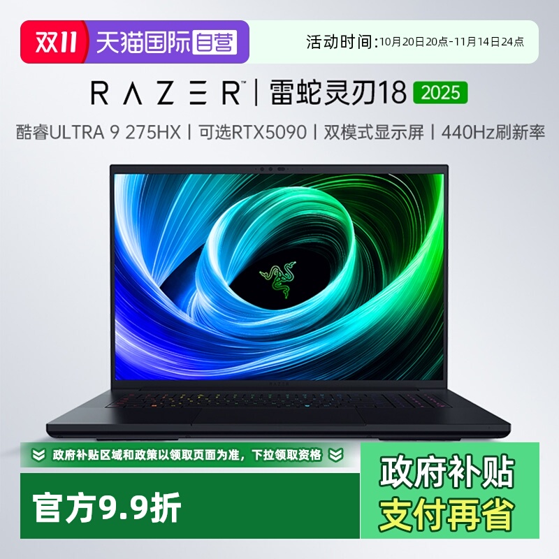 【自营】【政府补贴】Razer雷蛇灵刃18轻薄智能AI游戏笔记本电脑RTX5080/5090显卡18英寸240Hz可切换模式