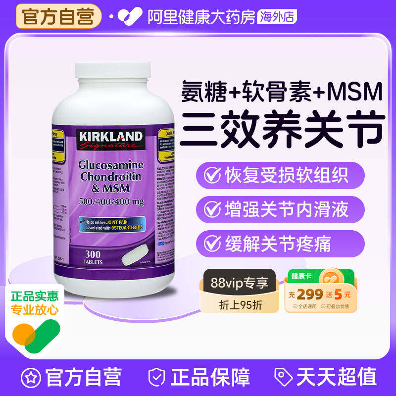 加拿大Kirkland柯克兰氨糖软骨素维骨力中老年修复软骨关节300粒