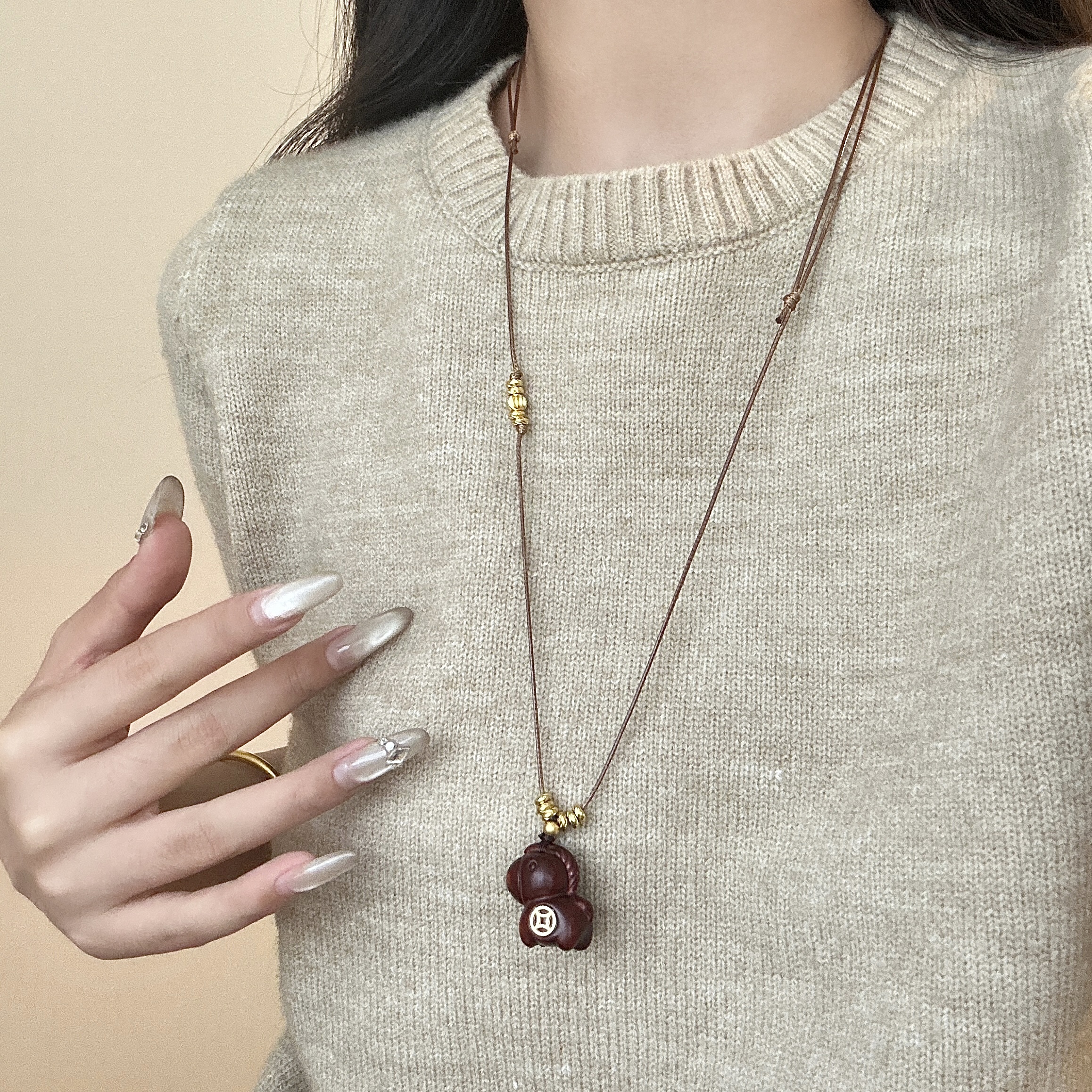 棕色不规则长款吊坠项链女款新中式复古挂绳毛衣链高级感挂脖配饰