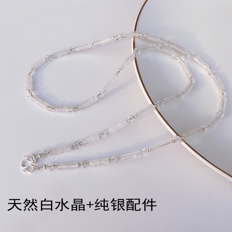 【清冷感】泰国佛牌链天然白水晶s925纯银配件唐卡水晶翡翠毛衣链