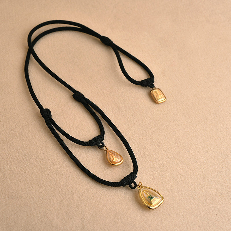 青提奶盖项链吊坠绳新中式国风复古唐卡泰国佛牌链女搭配玉石吊坠