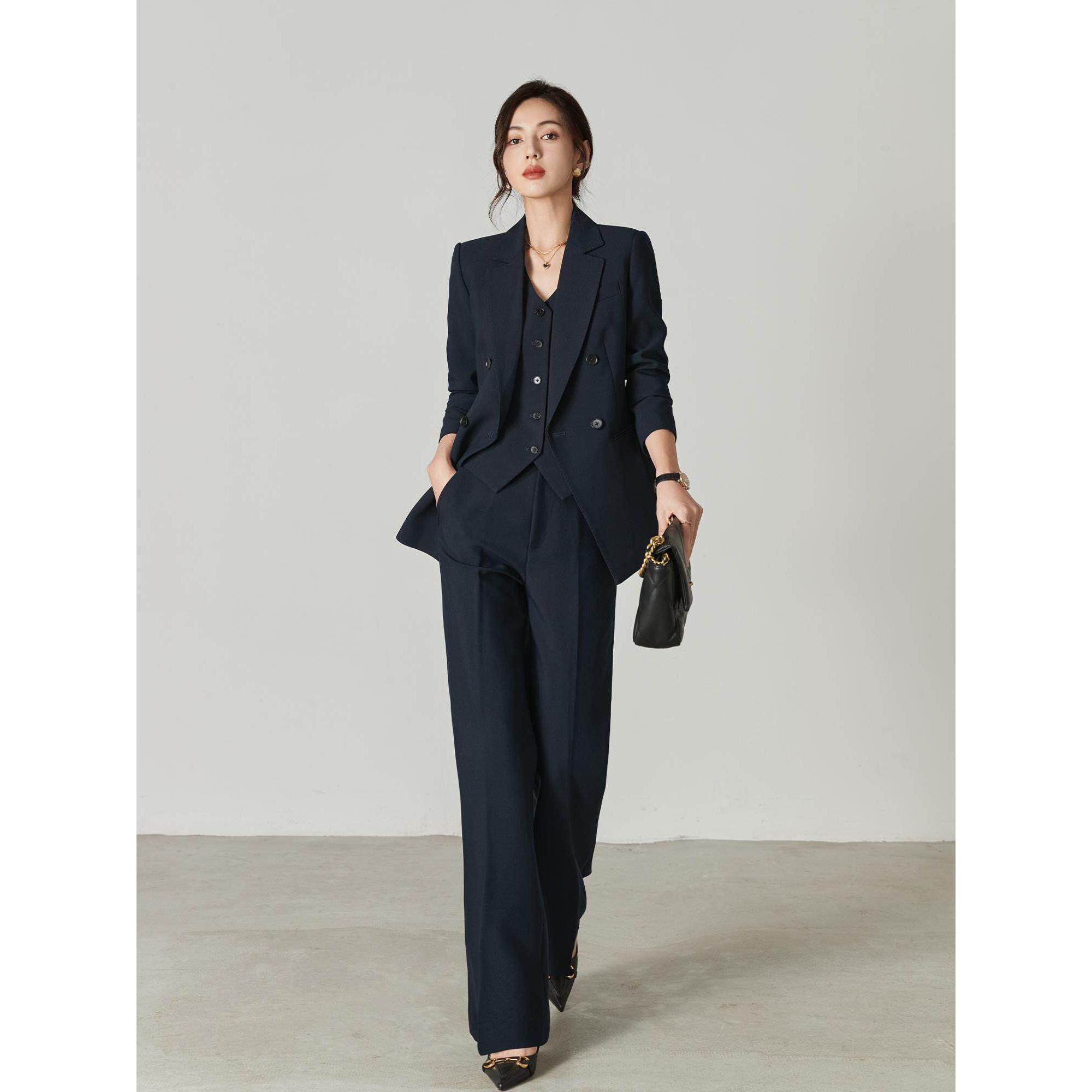 2025新款高级感藏青色西装马甲三件套职业通勤气质商务正装套装女