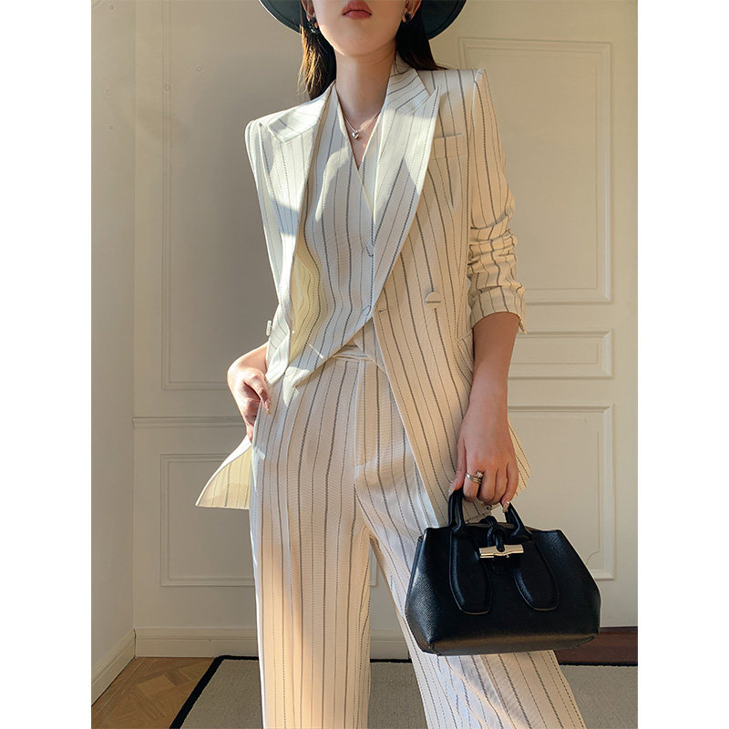 百家好西装套装女正装高级感条纹马甲三件套通勤职业气质西服外套