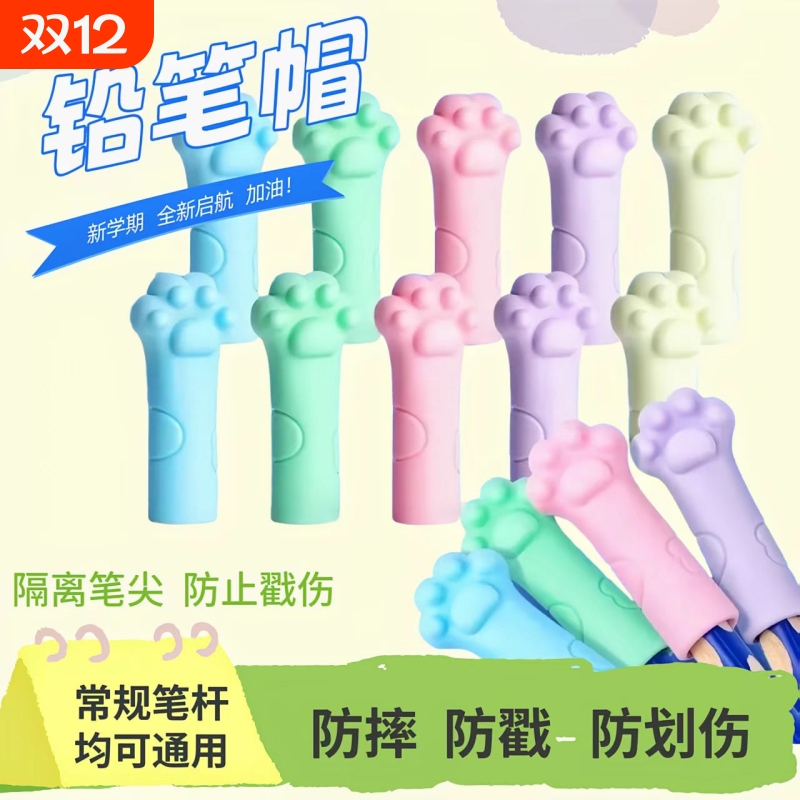 猫爪铅笔帽卡通猫咪铅笔套笔头防戳防摔儿童小学生女孩幼儿园男孩笔盖延长器初学者宝宝握笔器软胶六角