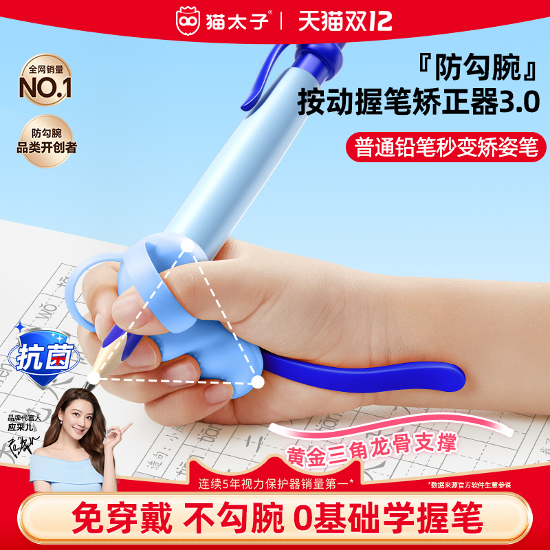 猫太子防勾腕握笔矫正器幼儿园初学者小学生一年级儿童专用写字手腕内勾纠正握笔姿势神器练字按动铅笔延长器