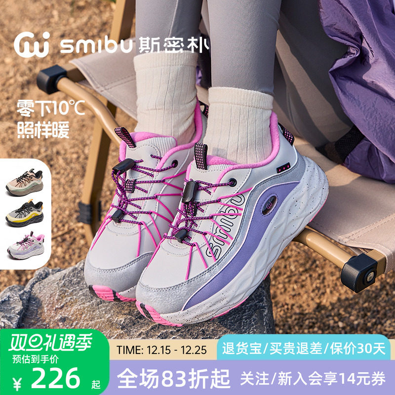 SMIBU童鞋2025冬新款加绒运动鞋男女童户外鞋跑步体考鞋丹霞地质
