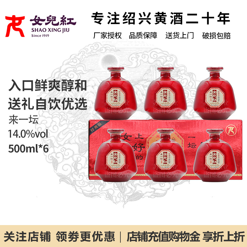 女儿红 绍兴黄酒 来一坛黄酒 半干型花雕酒 礼盒装500ml*6瓶整箱