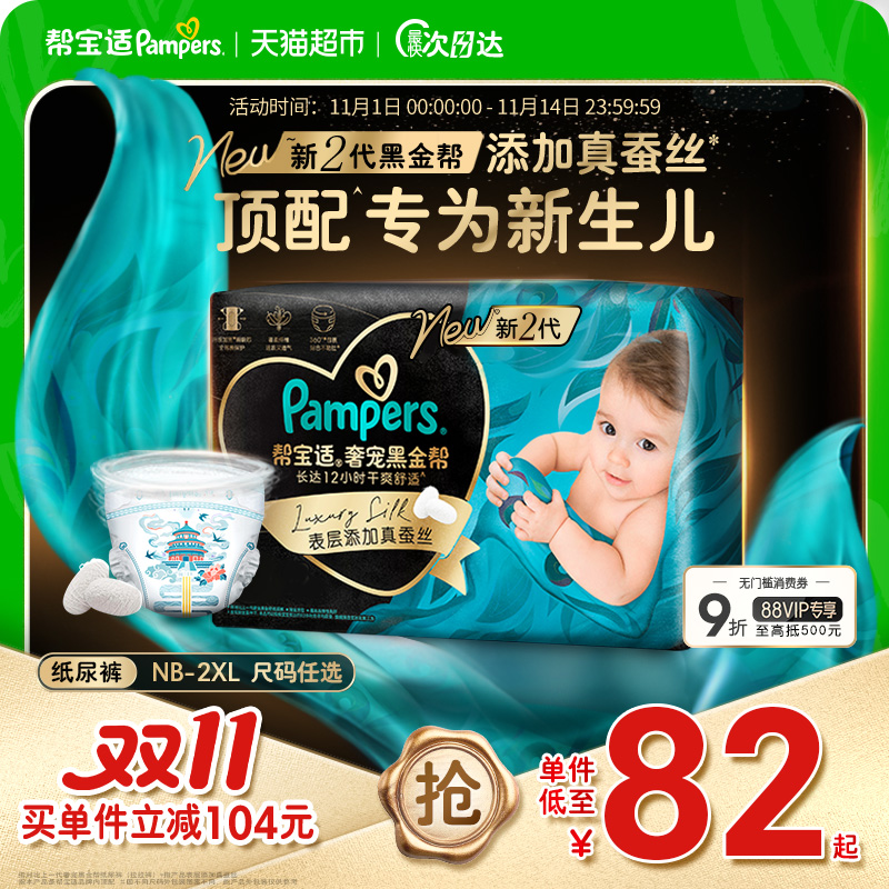 【新生儿顶配】帮宝适黑金帮纸尿裤添加真蚕丝NB-2XL超薄尿不湿