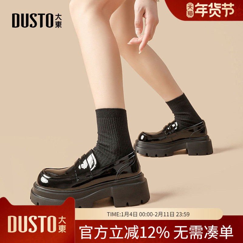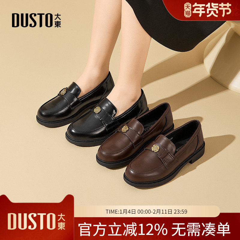 大东女鞋乐福鞋2026春季新款时尚软面女单鞋粗跟平底一脚蹬小皮鞋