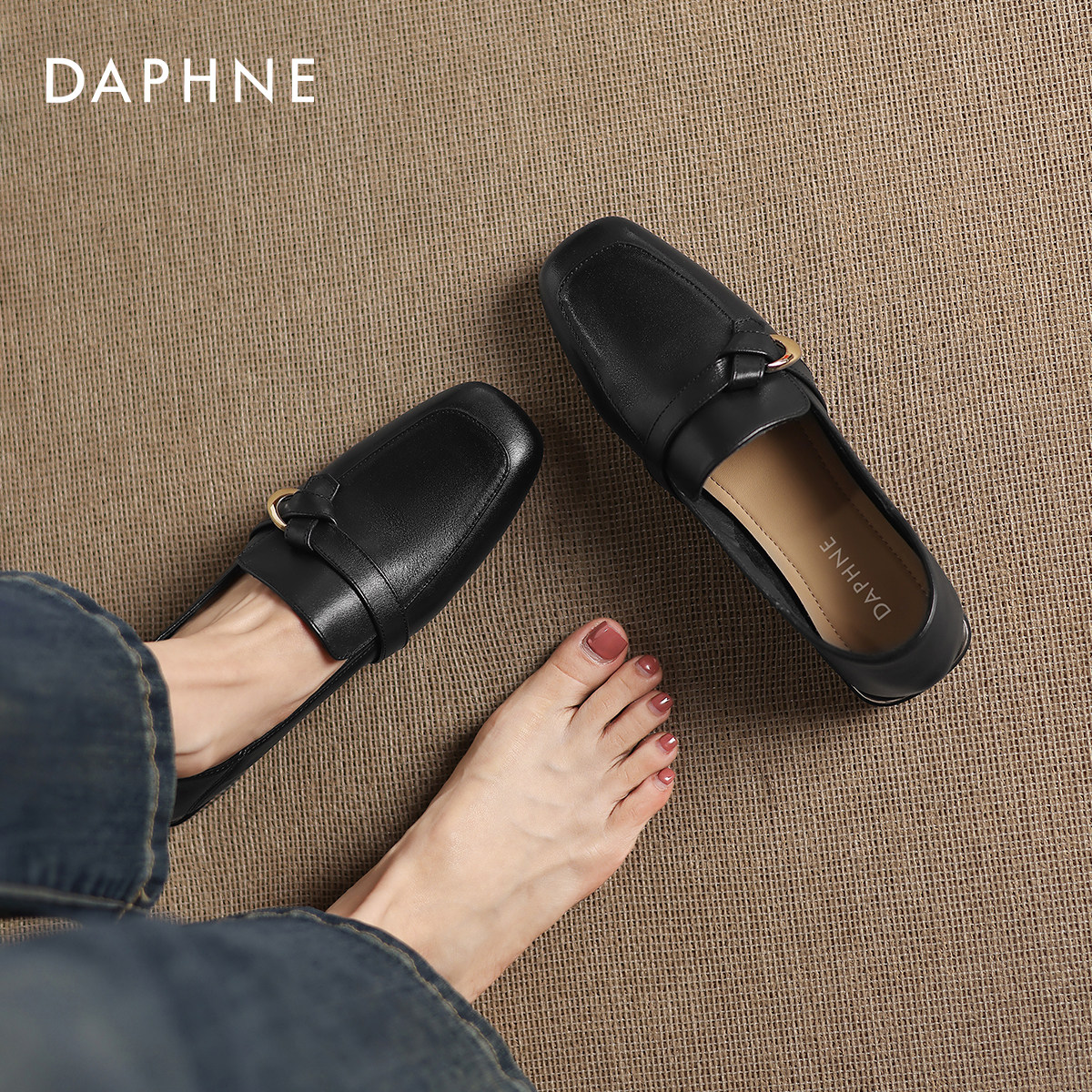 达芙妮真皮乐福鞋2025新款英伦风小皮鞋软底通勤单鞋粗跟女款百搭