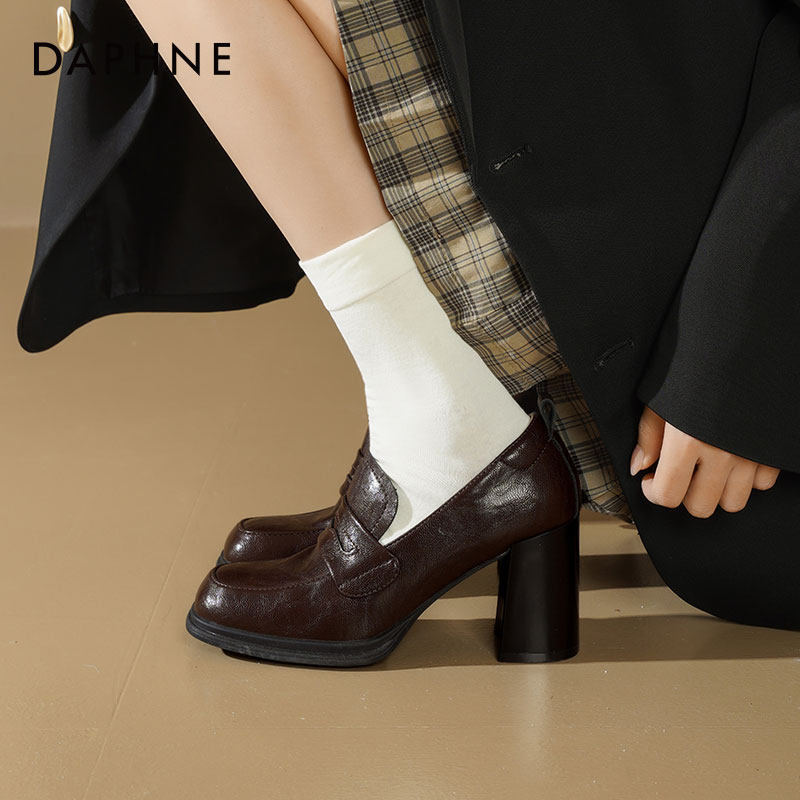 达芙妮棕色乐福鞋女2026新款秋季学院风小皮鞋女款厚底女单鞋粗跟