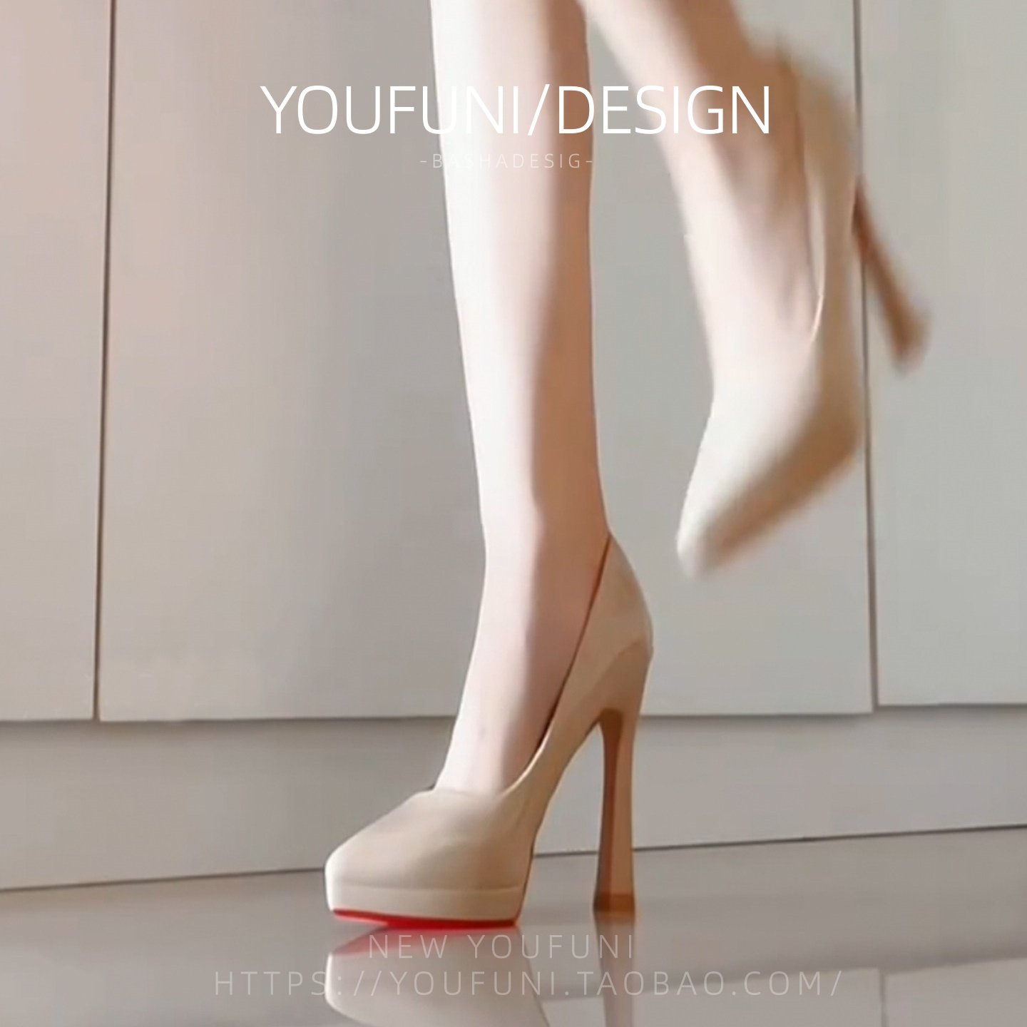 防水台裸色红底高跟鞋女尖头2026年新款漆皮通勤风单鞋粗跟不累脚