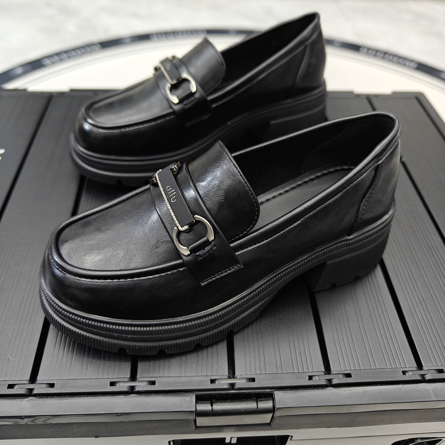 星期六英伦风乐福鞋女2025真皮圆头厚底单鞋粗跟一脚蹬增高小皮鞋